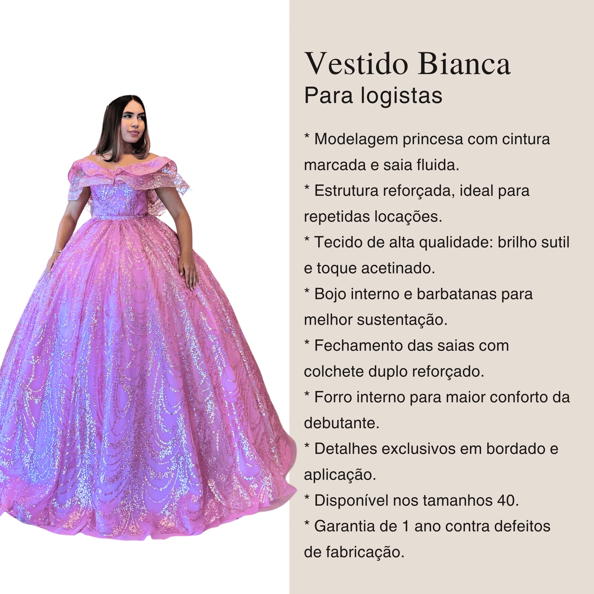 Encante suas clientes com o vestido Bianca, uma peça criada para brilhar em grandes momentos. Ideal para debutantes que buscam um visual marcante, moderno e ao mesmo tempo delicado, nossa Referência Bianca combina sofisticação, caimento impecável e detalhes que fazem toda a diferença.